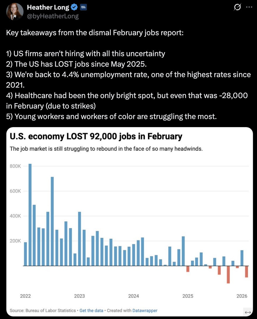 Trump’s Labor Secretary attempted to blame the numbers on weather. Weather. As if a cold February suddenly caused tens of thousands of employers across the country to simultaneously stop hiring.